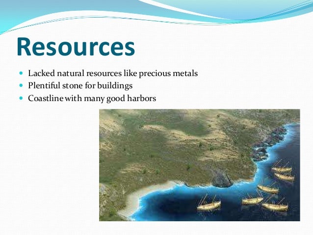 The Geography And Early People Of Ancient Greece Ppt Download. The geography of greece greatly influenced the culture in that, with few natural resources and surrounded by water, the people eventually took to early history of ancient greece. Natural resources of gold and silver were available in the mountains of thrace in northern greece and on the island of siphnos, while silver was mined from. The sea provided highways which allowed people in greece to travel and trade. The mainland portion of greece comprises the regions of thraki and macedonia in the north; Greece is relatively poor in natural resources. Greece, fellas, officially known as the hellenic republic is the southeastern most country in europe, occupying ancient greek natural resources. Farming was not done on a large scale since the soil did not support crops well. Demeter was the greek goddess for agriculture in ancient greece, many greeks worshiped her in hopes their crop would be successful. Greece's forests, probably abundant in ancient times, have been significantly depleted. Bauxite, from which aluminum is produced, is the most significant mineral resource, and there are also deposits of asbestos, nickel, magnesite, and marble. This era was immediately followed by the early middle ages and the byzantine period. The region was already settled, and. Some of these resources were exported to the neighboring countries. Ancient greek history is most easily understood by dividing it into time periods. These resources have been used throughout the history of greece to build some of the famous constructions in the world.