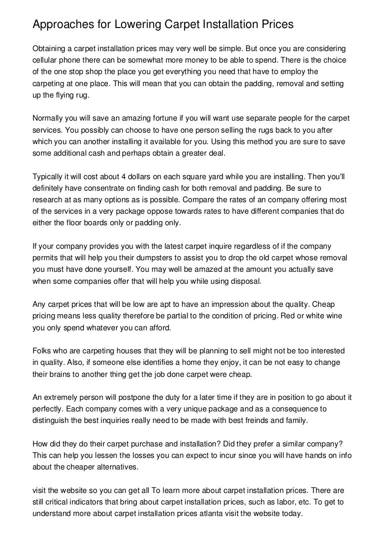 Approaches For Lowering Carpet Installation Prices - Carpets Are Generally Priced Per Square Metre, And The Cost Depends On The Material And Manufacture Of The Carpet You Choose.