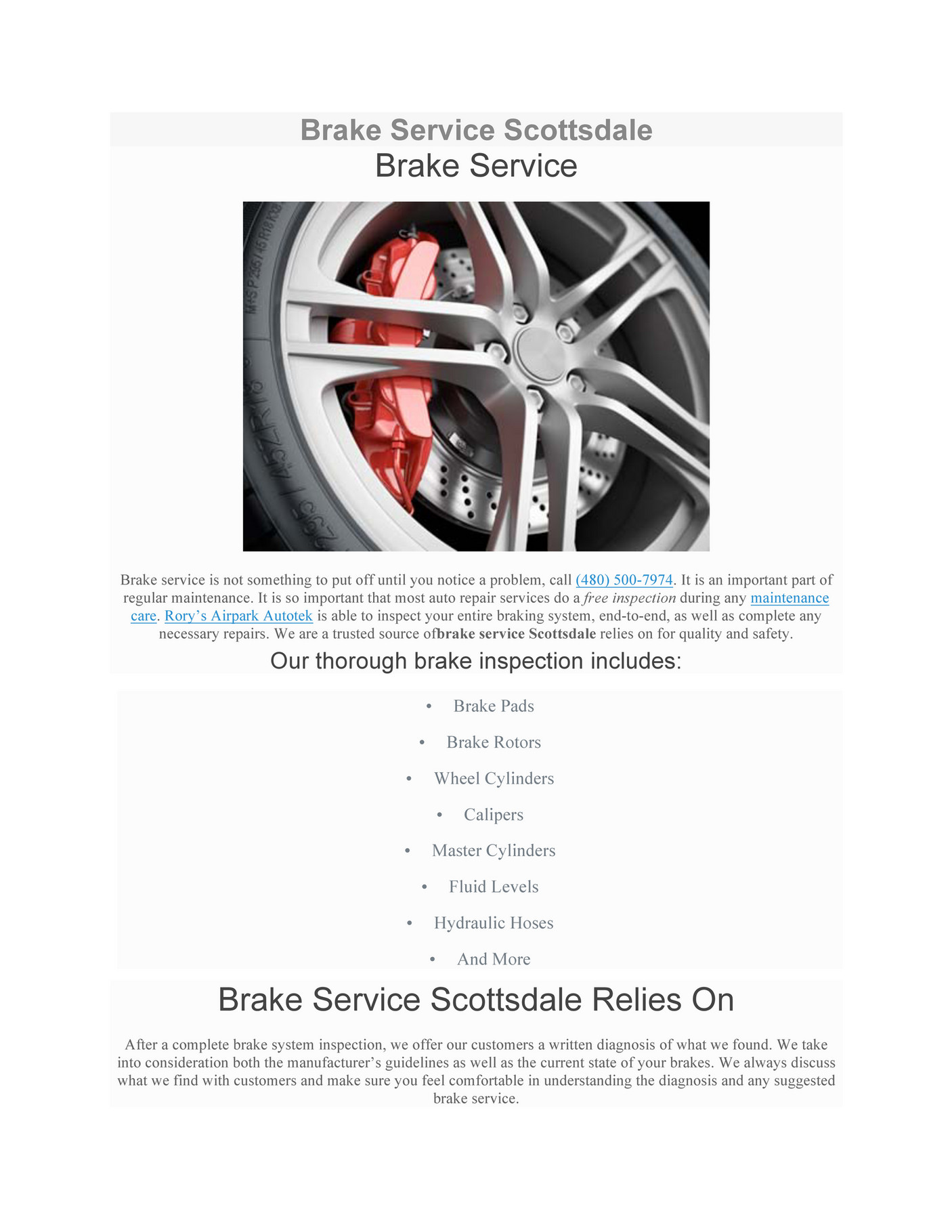 My Publications Brake Service Scottsdale Page 1 Created With Publitas Com . A Complete Brake Job, Therefore, Is (1) Inspecting The Entire Brake System To Determine The Condition A Complete Brake Job, Therefore, Should Be One That Completely Eliminates Any Preexisting Problems.