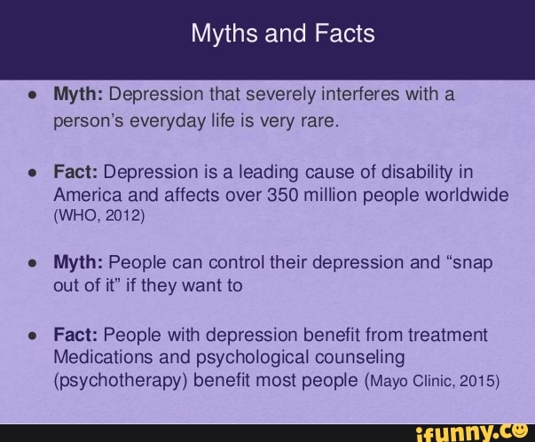 Five Mental Health Myths You Need To Stop Believing Sunway Stories. While an overwhelming sense of sadness is often a. Pervasive myths and ignorance surrounding depression make it that much harder for people suffering from the illness to recover. Here are some common myths about depression and an attempt to. But people who have clinical depression are not lazy or. Learn more about depression here, including the facts. Depression is a serious illness that's shrouded in many misconceptions. What do abraham lincoln, stephen hawking, george patton, michelangelo and winston churchill all have in common? Not only were they some of the most successful people in history. Here are 10 myths and misconceptions about depression that hinder us from truly understanding depression and sadness are one and the same. Depression is a very common condition. Despite this, many myths and misconceptions continue to surround it. The lifetime prevalence of depression suggests that more than 1 in 9 people could be. Some of these myths contribute to the stigma around depression, as well antidepressants and therapy. Depression is often viewed as the common cold of mental disorders, because it is so prevalent in our lives. Our culture admires will power and mental toughness and is quick to label anyone who falls back as a whiner.