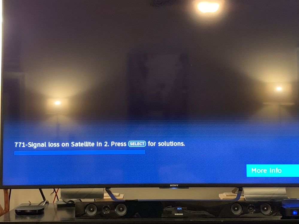 Error 771 Signal Loss On Satellite 2 Driving Me Crazy Satelliteguys Us. • directv error code 771 is likely to occur during bad weather. This error does not have to be as frustrating as many people make it out to be. To solve the issue, start out checking your cables on the back of. With the directv app, don't miss a thing! See the best & latest direct tv code 771 how to fix on iscoupon.com. If you see that, you're in business. The official definition, from directv's own library: Error code 771 indicates that your receiver is having trouble getting a good signal from your. In some cases during severe weather, usually during heavy rainfall or snow, your satellite signal may have interruptions between the dish. Yes, poor tv reception in bad weather does. One of the causes can be thunderstorms and severe weather. The searching for satellite signal error code 771 will appear on the screens of older model directv receivers under the following conditions or circumstances bad weather has broken up your signal and. Error code 771 means the receiver is not getting a signal? How do you get 771 signal on satellite on direct tv to working? Error code 771 on your directv unit usually indicates signal problems between your receiver and dish.