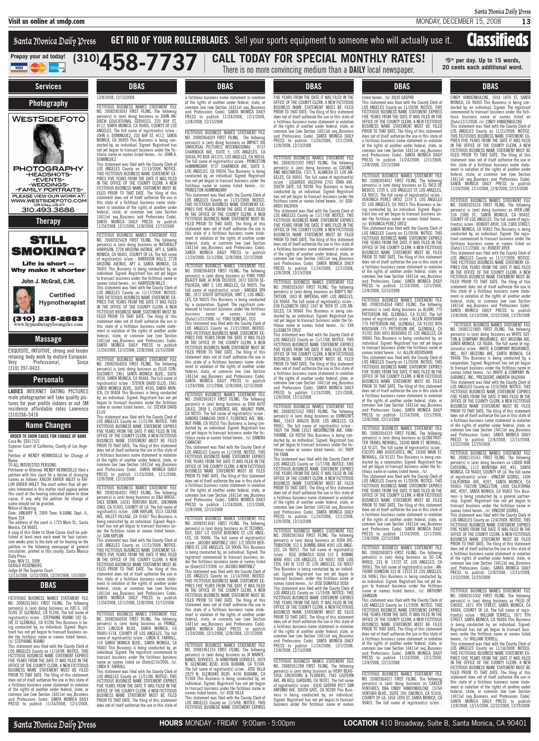Publish Your Dba Santa Monica Observer - With 17 Years Of Experience In The Publication Industry We've Set Out To Be La County's Leader In Affordable Dba Publication.
