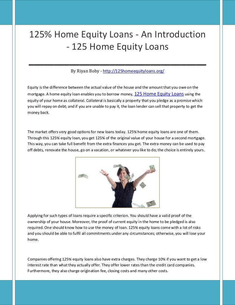 Low Equity Loans - Also, The Loans Can Be For A Variety Of Lengths, Typically Ranging From Five To 30 Years.