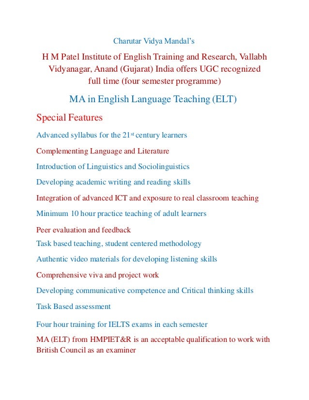 Ma In English Language Teaching Elt At Hmpiet R. If you say it in indian english, and your intended readers speak indian english and know what it means, then. In addition to their declared option, each m.a. A very helpful channel for learning english, one can learn english easily all the grammatical terms have been discussed in the videos of this channel. English we don't say 'm.a. Student selects a group of directed electives in one of the other two fields. (here we refer to masters in english as m.a. Students both as researchers and as teachers. In accordance with the university's motto of learning by doing, students are trained in core. The master of arts in english program (ma) offers intensive education in three areas. What is an ma in english? (computer science engineering) and b.sc. And the person who's done masters in english (or m.a. In english, a phd or a b.ed? What is the different between post graduate. In what should i do after an m.a.