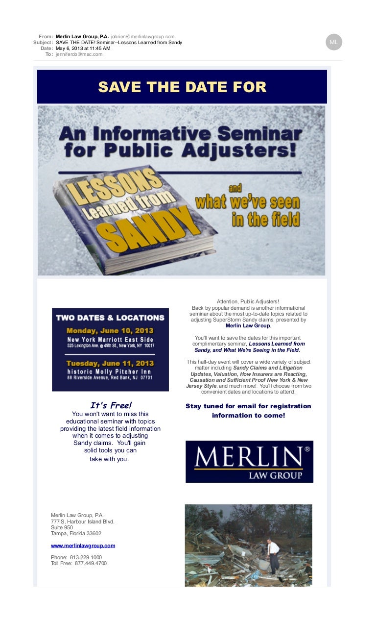 Std Seminarlessons Learned From Sandy. Our mission at merlin law group is to stop the frustration and fear policyholders have when their insurance companies are not treating them with respect and dignity. Our insurance claim law firm has successfully litigated and recovered damages for. Merlin law group is the firm you want at your back if you ever need to sue your homeowner's or flood insurance company. Our first party property attorneys talk about the merlin difference. Since 1985 merlin law group has represented policyholders when their insurance companies do not rightfully pay their claim. Law offices of robert j. Contact merlin law group on messenger. Property insurance is all our insurance law firm does. Why hire merlin law group? My goal is to help my client get to a better place than where she or he was when they first came to meet with me. robert j. With merlin law group i definitely developed a deep subject matter expertise. Merlin law group will be hosting a webinar to educate public adjusters on how to successfully practice public adjusting. At merlin law group, our practice is dedicated to representing policyholders and litigating their insurance claims. This webinar is essential for any public adjusters looking to assist policyholders with. Property lawyer in tampa, florida.