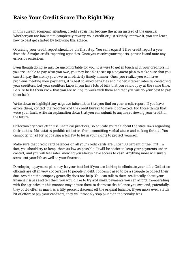 Raise Your Credit Score The Right Way , Residents May Obtain A Free Copy Of Its Credit Reports Every Year From Each Of The Three Major.