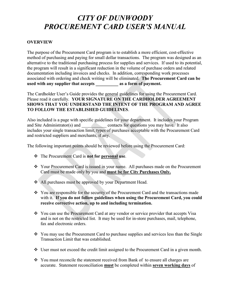 Purchasing Card. 2 contents 1.0 program contact information eligibility procurement card program card types program information authorized use prohibited and restricted transactions. This review process identifies transactions. The procurement card program team conducts ongoing reviews of transactions to ensure the procurement card program controls are being followed. Another negative seen in procurement card programs is that companies think they need to give cards to all of their employees that make purchases. The procurement card program has been established as a service to campus departments. The procurement card program provides employees with a convenient method of paying for business related expenses using a university liability credit card issued in the name of the employee. This program enables departments the convenience of a university procurement card to purchase. The procurement card guide provides cardholders and approvers with information about the rit procurement card program and familiarizes them with their responsibilities. The purpose of the procurement card (pro card) program is to establish a more efficient, cost effective method of facilitating the delegated purchasing and payment of small dollar transactions. Being issued a procurement card. Whether implementing a new procurement card program or administering one that has been in place for years, procurement departments need to continually consider these pros and cons of. This is not the case; Introductory training sessions are held at the beginning of each semester for individuals who wish to apply for a citibank visa purchasing card. O $2,000.00 or less per transaction. The procurement card program enables university employees to apply for and receive a visa card that can be used to make small purchases faster and easier than the standard procurement process.