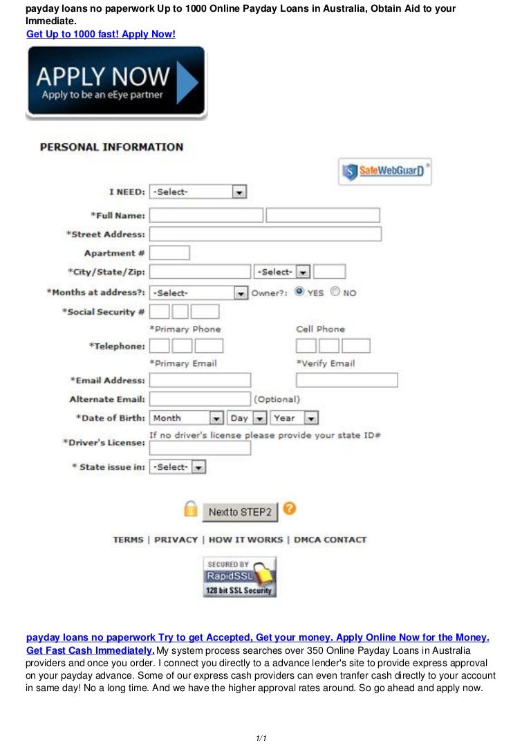 Payday Loans No Paperwork Up To 1000 Cash Loans In Australia Obtain. It is a common situation in south africa when banks reject any applications from people who cannot provide them with one document only. No paperwork loans for your convenience, good for the environment! As a result, we want to help you save the forests with our paperless application process. How we can help with the quick cash loans: Fast loans without paperwork from binixo! So, our no paperwork quick cash loans are there to save you time. For fast loans with no paperwork up to $50,000, choose moneyme. Get up to $50,000 in minutes. Money credited in as little as 30 mins. No paperwork business loans are also faster because lenders typically ask for access to your accounting software and bank accounts online. They're also a convenient way to. ✅ 65 days repayment term! Payday loans are named after the quick turnaround of the debt. Our business is 100% online, so we are a massive saver on waste reduction. We offer low interest ⚡ quick payout!