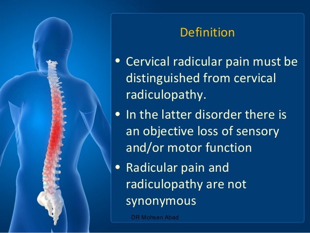 Nonoperative Management Of Cervical Radiculopathy American Family Physician. Cervical radiculopathy in the neck causes pain, numbness & tingling in the neck, arms early treatment is crucial and after reduction of radicular or nerve pain, a rehabilitation program focused on. This impingement typically produces neck and radiating arm pain or numbness, sensory deficits, or motor dysfunction in the neck and upper extremities. Radicular pain consists of pain that radiates from the spinal nerve root either part or all the way into the extremity. As an example, an inflamed nerve root in the neck may radiate pain into the arm or hand. Radicular pain may extend beyond your neck, radiating down to your shoulders, arms, and fingers. Radiculopathy or radicular neck pain is not the same as referred pain as it is concerned with the nerve roots alone. Radicular pain is one of the symptoms of radiculopathy. Often, this radicular pain is accompanied by motor or sensory disturbances. This type of nerve compression can also cause weakness, numbness, tingling, and reflex problems. Lumbosacral radiculopathy is a disorder that causes pain in the lower back and hip which radiates down the back of the thigh into the leg. Radicular pain, or radiculitis, is pain radiated along the dermatome (sensory distribution) of a nerve due to inflammation or other irritation of the nerve root (radiculopathy) at its connection to the spinal column. Many people confuse the terms. Cervical radiculopathy leads to neck and radiating arm pain or numbness in the distribution of a specific nerve root. Radicular pain occurs when pain radiates from an inflamed or compressed nerve root. Referred pain is a general term used to define pain experienced in one area that is.