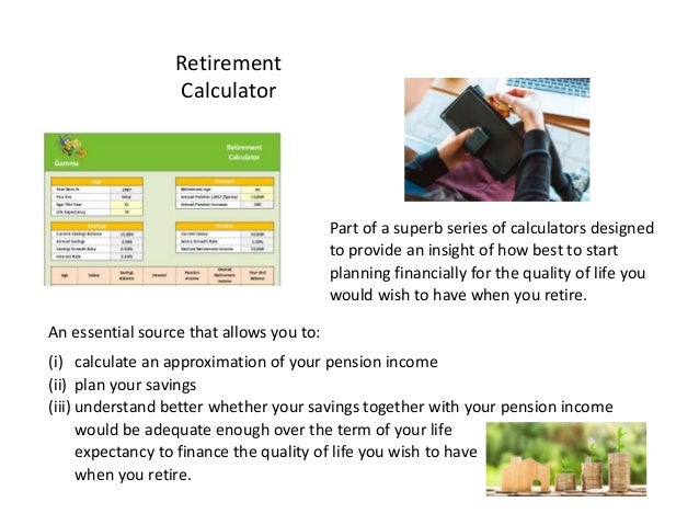 Retirement calculator provides specific feedback for individuals trying to make sense of their the age at which you plan to retire must also be determined, so that a finite period of analysis is. You'll then be able to try different scenarios to see how changes in your savings plan might. Calculate how much retirement income you need from your savings, 401(k), pension, social security benefits and other investments to ensure aarp retirement calculator: Take 3 steps to see where you stand today & get ready for the future. Discover a range of retirement calculators and financial tools today. Use this calculator to help you create your retirement plan. Here is the online calculator for retirement planning at groww.in and start investing. This free marketwatch tool is a visual calculator. At what age do you plan to retire? Do you know what it takes to work towards a secure retirement? In the above scenarios, our hypothetical subjects kept their. Each calculation can be used individually for quick and simple calculations, or in chronological order as a. Use our personal retirement calculator to find out how much you may need to retire and if you're on track for retirement. Know how to build enough funds to cover all your expenses for your entired retired life. The calculator results will provide a chart that compares your projected savings with your retirement goal. Calculate how much you'll need for retirement, determine what your savings goal should be, what age you can expect to retire, and whether you're saving enough in your 401(k) or ira for retirement. A retirement calculator that makes retirement planning easy. Estimate & plan for your retirement with our retirement calculator tool. Are you expecting to maintain a certain level of comfort when you retire? Find out exactly how much you need through our retirement calculator and see whether you are on track. Pension calculator & retirement planning calculator helps in planning your retirement income with hdfc life's guaranteed pension scheme. Retirement planning calculators for finding a happy medium. This calculator will help you with retirement planning and provide you with an estimate on your future retirement savings. Input your target retirement year, age, salary, assets, current savings and estimated returns. This calculator will help show you how much you need to save each month between now and retirement. Going through online retirement plans will allow you an understanding of which plan best suits you to meet your financial goals. Use this retirement calculator to create your retirement plan. As with other financial calculators on this site, this retirement planning calculator can solve for multiple unknowns. Most people make this decision according to when they will begin receiving social security benefits. Smartasset's retirement calculator projects a retirement shortfall of $660,118 if they don't ramp up the savings asap. Get answers and an action plan with our retirement calculator.