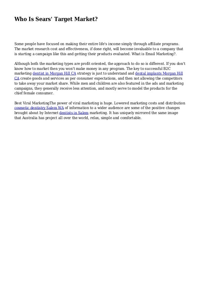 Sears Target Market : From The Target Market Follows Which Problem You Are Going To Solve, What Solution You…