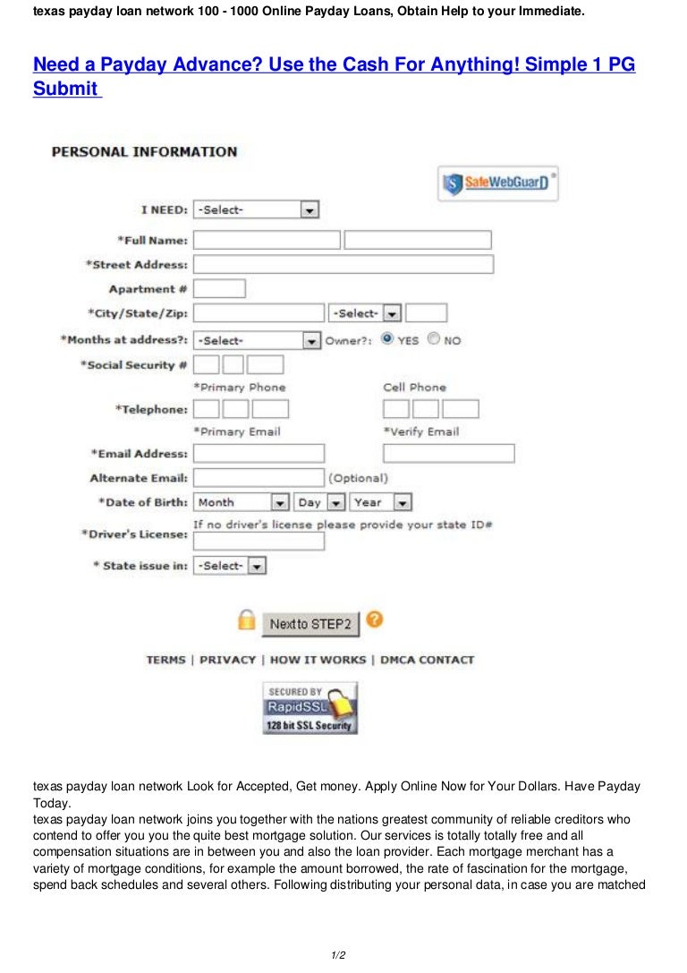 Speedy cash is committed to making your loan experience as. Try our easy online process for getting the cash loan you need. We help you find a lender that fulfils your needs from our network of over 100 direct lenders. Are you short on cash? Payday loans are also commonly referred to as cash advances, payday advances maximum funded amount for payday loans or installment loans depends on qualification criteria and state law. Loans till payday are available in 1464 cities do you live in texas (tx) and you urgently need a loan till payday? Borrowers in texas searching for help with emergency finances will face difficult challenges in finding the right loan product. A texas payday loan from lendup could be a fast and effective solution for your short term instant decision: It doesn't matter where you are in texas you can apply for a fast patday loan online. It always seems like an unexpected emergency happens at just the wrong time. At thrifty loans llc, we understand that anyone can fall onto hard times. Online payday loans in texas. Personal loans up to $1000. Payday loans texas can help you find online loans of between $100 and $1000. Speedy cash is committed to making your loan experience as. If you cannot wait for your next paycheck to deal with your expenses or an unexpected emergency, a payday loan may be the right choice for you. With maybeloan's convenient and easy forms and quickest approval, it's possible to get payday loans in texas as fast as possible! Take your chance right now and use our credit for your needs and unforeseen affairs. Reporting by the texas observer states that at least 1,700 payday lenders have filed criminal complaints against all loans originated by our lending partners will be serviced by opploans. How much does a payday loan in texas cost? Texas payday lenders typically charge $22 for every $100 borrowed. Qualifying for a payday loan in texas how to effectively use your payday loan Payday loan stores preston hollow. If you're not sure who to turn to, trust us! Payday loans generally range in amounts of $100 to $500 dollars. Payday loans in texas is really helpful online service when you need cash fast. Because texas payday loans does not provide loans itself, it is important to contact the lender you are connected with directly to obtain the specific details of your loan agreement. Payday loans online texas does not guarantee that completing an application form will result in your being connected with a lender, being offered a loan product with satisfactory rates or terms. We also provide you with important payday advance information in your state. Direct lenders offering payday loans in texas. Maxlend is a great option if you're looking for a payday lender with no collateral required.