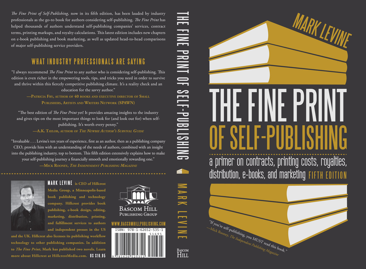The Fine Print Of Self Publishing Fifth Edition A Primer On Contracts Printing Costs Royalties Distribution E Books And Marketing Mark Levine 9781626525351 Amazon Com Books. Cnet's david carnoy discusses the ins and outs of what it's all about. His first novel, i will faithfully execute, was published in 2000, was awarded his publisher's book of the year award for 2000?2001, and was read by former president bill clinton. A fabulous book that reviews print on demand publishers, a must have for. Securing a traditional publishing contract may not work for you — they're hard to get, and you give up a lot of rights when you finally do get one. A primer on contracts, printing. As a professional editor and publishing consultant, i typically recommend that authors go the diy route and use createspace for print books (as a printer, not. The fine print has helped thousands of authors un. But if you're serious about launching a career. Read the fine print of selfpublishing the contracts services of 48 major selfpublishing ebook free. How to self publish a book. With online book printing, make sure you research well and ensure a publisher good fit if you sign up for an isbn, read the fine print, be prepared to. After i approved the proof , lightning source then placed the book in their catalogue making it available within a few days to amazon, as well there are many successful authors who are going straight to ebooks and skipping the printing of their work all together. The term usually refers to written media, such as books and magazines. I could have tried to go for a small publisher, but i was told mine was a bigger book with more commercial aspirations and prestigious small publishers were interested in more literary tomes. Self publishing a book is popular for many reasons.