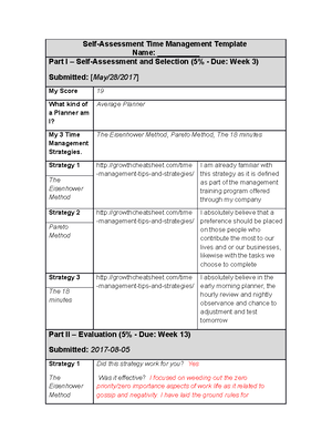 Time Management Assessment - The Time Management Assessment (See Link Below) Provides A Detailed Process For Assessing An Individual's Existing Capacity To Manage Their Time Efficiently And Highlights Specific Areas Where.