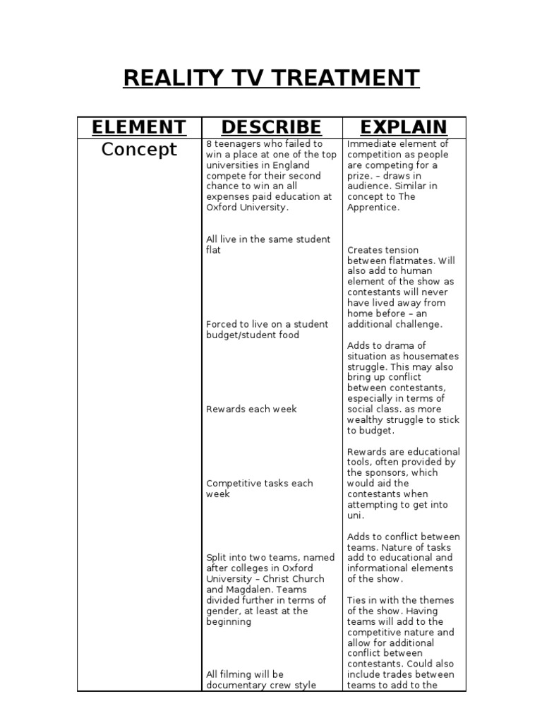 Treatment Template . This Page Will Keep You Up To Date With The Shows Progress And Auditions.